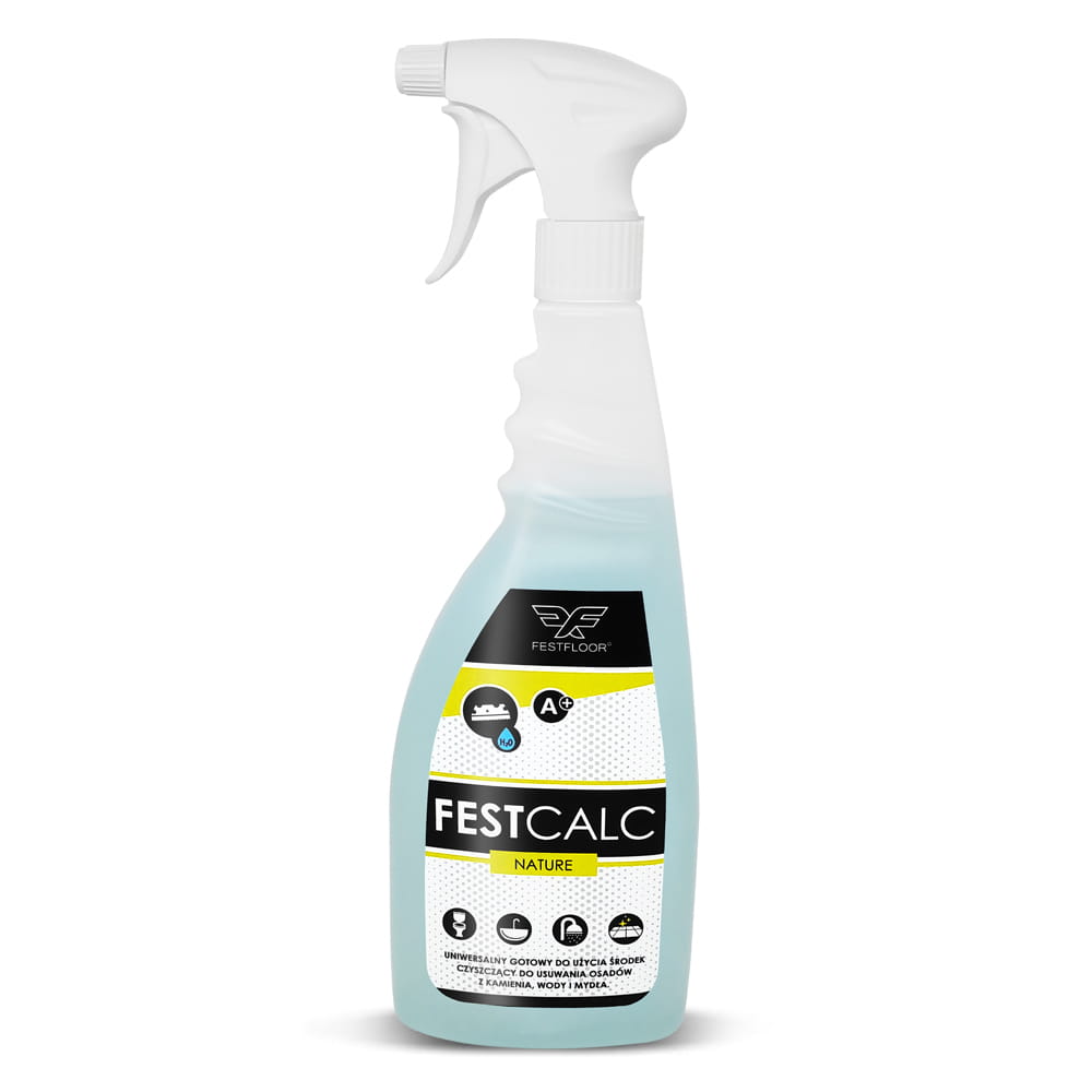 FESTCalc to gotowy do użycia środek czyszczący na bazie środków powierzchniowo czynnych do usuwania osadów z kamienia, wody i mydła z powierzchni pokrytych mikrocementem, z płytek, glazury, kranów, toalet, podłóg, itp. Przywraca połysk i blask.